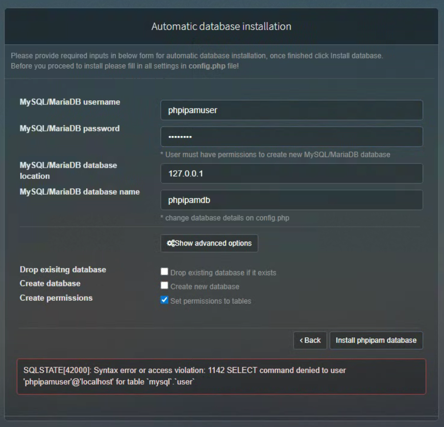 phpIPAM 資料庫設定